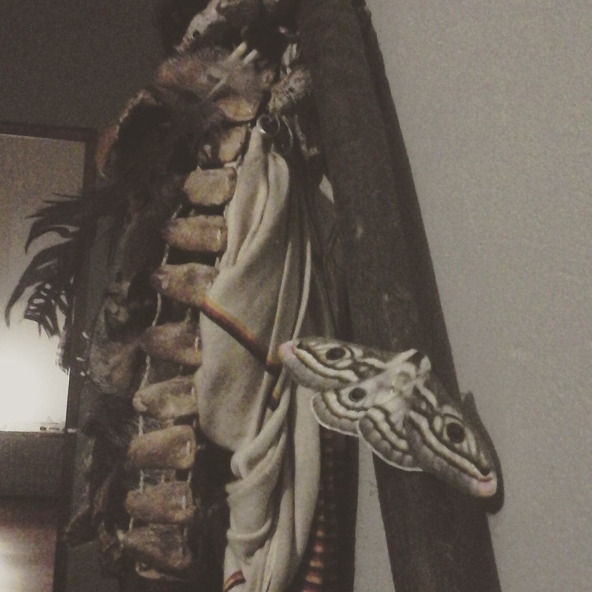 The Darkness Swallowed Mantis into a unknown abyss where he was imprisoned, enslaved and humiliated by Meerkat and the torment this Darkness held. Broken to the last of his will from what seemed like a eternity he breaks-down, sitting on the floor he take what some say his shoe and others say a feather and through it into the darkness cursing his ordeal.  The item flew through the air and Mantis noticed that it just kept on going up, changing into something he has never seen before resting up there in the Darkness. Mantis jumped up and shouted at it saying “You! up yonder! you shall now glow down, so we can find our way in our Darkness”. He opened his wings and flew up to what we perceive as the moon today and went through it into the sanctuary of the 1st Creation and away from the endless servitude and humiliation of the Darkness.
